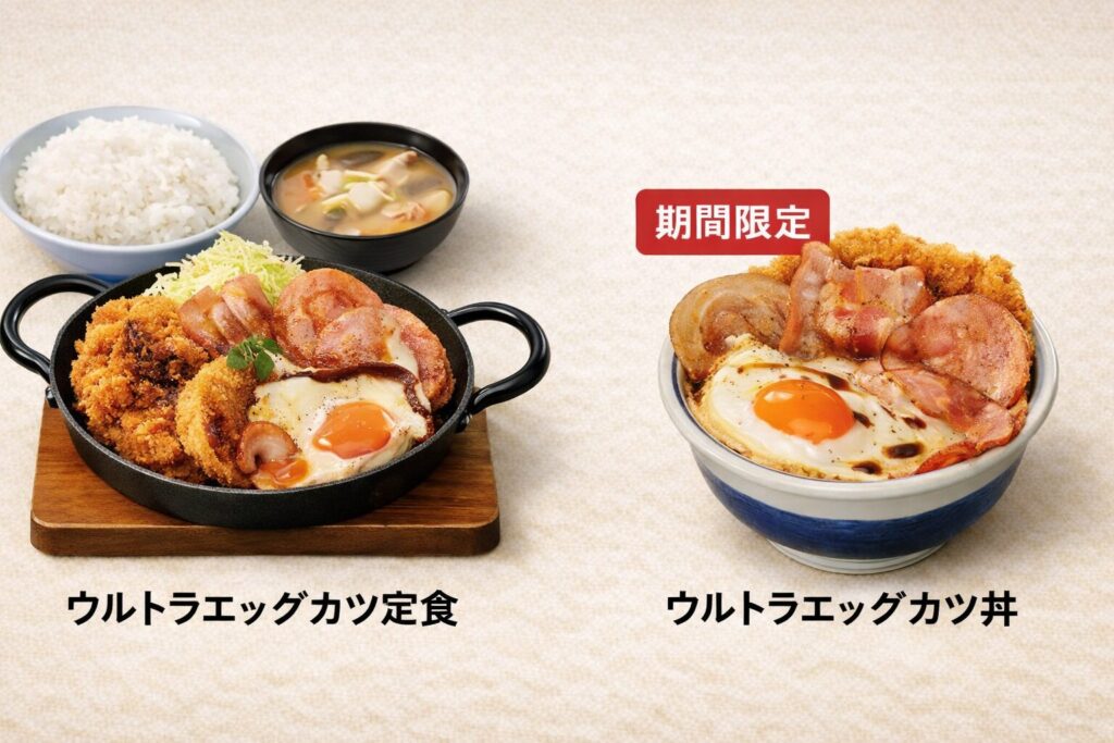 「ウルトラエッグカツ定食」と「ウルトラエッグカツ丼」の2種類が販売されています。